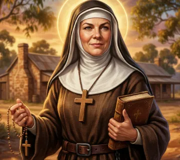 - 2Imię i nazwisko — Pełne imię świętego lub błogosławionego na zdobionym bannerze.