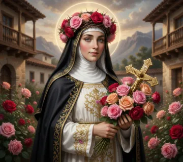 - 5Atrybuty — Do 5 ikon przedstawiających cechy świętego (np. Męczennik, Mistyk, Spowiednik). Każdy atrybut ma własny opis na profilu online.